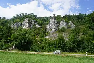 ![]() Standort der Höhlenburg (Höhle durch Belaubung verdeckt) | ||