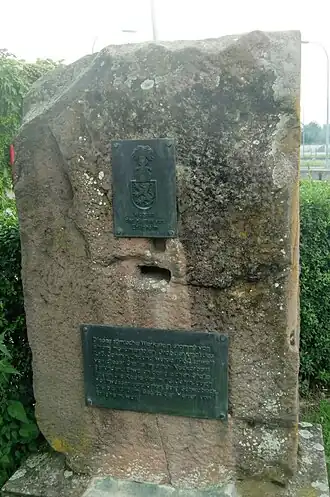 Gedenkstein an die ehemalige Burg Schwabeck mit dem Wappen der Erligheimer | ||