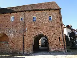 Das untere Tor entstand um 1250 als zweigeschossiger Backsteinbau, der eine Kapelle im Obergeschoss beherbergte. Um 1500 stürzte das Tor ein, woraufhin die die Fenster zu Schießscharten vermauerte wurden. Im 17. Jahrhundert wurde das Tor umgebaut. Im 18. Jahrhundert wurde der innere Torbogen abgebrochen, weshalb heute ist nur noch die Fassade erhalten ist. Der Giebel wird von einem Rundbogen umfangen und bestand einst aus einer gestaffelten Dreifenstergruppe, die heute zugesetzt ist. Seitlich der Brücke befinden sich, wie am oberen Tor, Lisenen und Rundbogenfriese mit schwarzer Glasur. Die ehemalige Wippbrücke wurde im 18. Jahrhundert durch einen steinernen Damm ersetzt.[8]