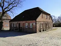 Die Querdielenscheune wurde um 1700, als Gebäude mit einer zentralen Durchfahrt gebaut. Hinter dem Bauwerk befindet sich ein Kräutergarten. 2004 bis 2005 wurde sie als Vereinszimmer der Burgvereins restauriert. Besonders ist die Decke aus Spaltbohlen im Inneren. Außer der Querdielenscheune befanden sich hier noch weitere landwirtschaftliche Gebäude, die Ende des 19. Jahrhunderts durch einen Brand zerstört wurden.[11]