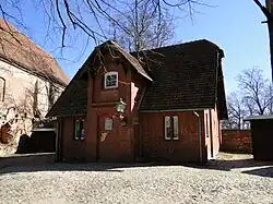 Im 17. Jh. wurde neben dem Turm ein einstöckiger Fachwerkbau (Bäckerei) erbaut. Darunter befanden sich tiefe, gewölbte Keller, deren Zugang von außen durch eine steinerne Treppe erfolgte. Von diesem Keller führte ein Gang unter der Ringmauer hindurch in den Burggraben. Wahrscheinlich war dieser Gang Teil der im 16. Jh. angelegten Wasserkunst und trägt daher auch noch heute den Namen Schöpfgang. 2010 wurde der Schöpfgang wegen Einsturzgefahr gesperrt, bis er im Mai 2015 saniert wurde.[12][13]