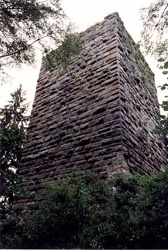 Von der ehemaligen Burganlage sind noch der Bergfried, der Rest einer sechs Meter hohen Mauer und der 20 Meter tiefe Halsgraben erhalten.