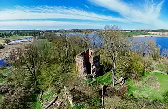 ![]() Ruine des Wohnturms der Wasserburg Stuer aus Östlicher Richtung | |
