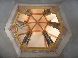Sie wird in vier Etagen unterteilt: der Hauptbereich umfasst die Waffenhalle, eine „archäologische Krypta“, eine kleine und eine große Küche, eine untere Kapelle, die Ritterstube, das Esszimmer und den großen Rittersaal.[2] Dieser fasst bis zu 500 Personen.