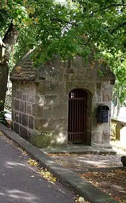 Errichtet wurde sie, wie aus der baulichen Gestalt zu schließen, wahrscheinlich im 15. Jahrhundert. Es handelt sich damit um das älteste noch erhaltene Gebäude der Stadt. Die erste urkundliche Erwähnung datiert aber erst auf das Jahr 1709, als der einfache Quaderbau im Stile einer Feldkapelle vermutlich erneuert wurde. Der unterhalb der Kapelle vorbeiführende Weg hieß im 18. Jahrhundert der heilige Graben.[1]