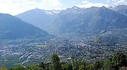 Als Burggrafenamt (italienisch Burgraviato) werden der Abschnitt des Etschtals um die Stadt Meran sowie einige benachbarte Gebiete in Südtirol bezeichnet. Es war bereits im Mittelalter ein einheitlicher Verwaltungsbezirk und bildete das Kerngebiet der historischen Grafschaft Tirol.[1] Den Namen erhielt es aber nicht aufgrund der hohen Dichte an Burgen, sondern da der Bezirk direkt dem Burggrafen zu Tirol unterstand.