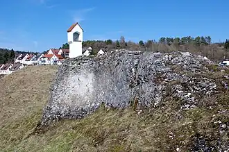 Von der ehemaligen Burganlage sind nur noch Mauerreste erhalten.