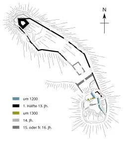 - ↑ a b c Friedrich-Wilhelm Krahe: Burgen des deutschen Mittelalters. Grundriss-Lexikon. Flechsig, Würzburg 2000, ISBN 3-88189-360-1, S. 197.