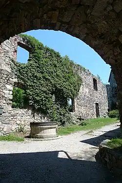 Heute stehen von der einstigen Burganlage noch die dreigeschoßige Burgkapelle Hl. Anna, in der bis zur Sperre im Jänner 2021 Gottesdienste abgehalten werden,[12] der Bergfried mit einem kleinen Museum, Reste der westlich vom Bergfried gelegenen „Oberen Burg“ und der mauerumgürtelte Fünfeckturm.