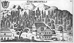 Die Burg wurde von Wulfing und Heinrich von Gurnitz (Vgl. Burgruine Gurnitz) um das Jahr 1230/31 errichtet. Das Recht, eine Festung auf der dem Kloster Viktring gehörenden Besitzung zu errichten, erhielten sie von Papst Gregor IX. 1315 ging die Burg in den Besitz der Auffensteiner über, 1404 (oder 1408) kam sie unter die Herrschaft der Herren von Neuhaus. Nachdem diese 1566 das Schloss Ebenthal unterhalb der Burg fertiggestellt hatten, gaben sie Greifenfels 1588 zu Gunsten ihrer neuen Residenz auf. Die Ruine befindet sich seit 1704 im Besitz der Grafen von Goëss.