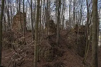 | Erhaltungszustand | Reste von Torbauten und Bergfried | |