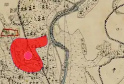 Die Burganlage verfügte über ein ausgeprägtes Wall-Grabensystem mit Ringmauer und tiefem Halsgraben im Nordwesten sowie einen quadratischen Bergfried auf einer Grundfläche von 7,5 mal 7,5 Metern aus Gussmauerwerk, verkleidet mit 2,5 Meter starken Granitbuckelquadern.