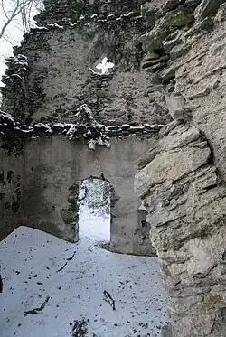 Sie steht im äußeren Burghof: man betritt eine Doppelkapelle mit teilweise erhaltener Halbkreisapside, vermutlich aus der ersten Hälfte des zwölften Jahrhunderts, ursprünglich flach gedeckt, später mit einem steilen Satteldach geschützt. In der unteren Kapelle erkennt man noch einen spitzbogigen Triumphbogen, wohingegen jener der oberen Kapelle nicht mehr existiert. Die Chöre waren gewölbt, sind jetzt einsturzgefährdet; an der Westwand befinden sich zwei Rosettenfenster.