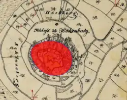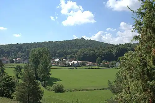 ![]() Burgruine Hohenburg – Ansicht des Burgberges aus südöstlicher Richtung | ||