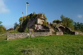 - ↑ Johann Georg Lehmann: Urkundliche Geschichte der Burgen und Bergschlösser in den ehemaligen Gauen, Grafschaften und Herrschaften der bayerischen Pfalz. Ein Beitrag zur gründlichen Vaterlandskunde. Kaiserslautern 1866. S. 211.