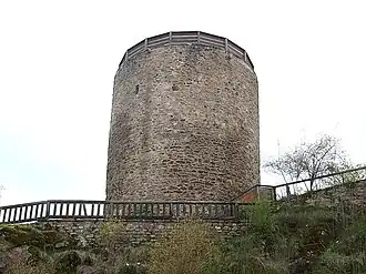Burgruine Kollnburg – Ansicht des runden Bergfriedes | ||