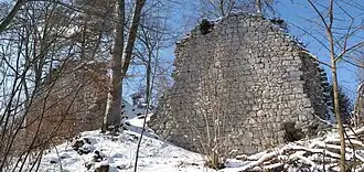 Die Kernburg ist im Westen durch einen weiteren, tieferliegenden Abschnittsgraben von der Vorburg getrennt. Sie wird vom rund 5,5 Meter hohen Stumpf eines Donjons, einem 12 beziehungsweise 11,5 Meter breiten und fast 23 Meter langen wohnturmartigen Bau auf rund 804,3 Meter über Normalnull, dominiert. Die Mauerstärke beträgt an der Nordwestwand 2,7 Meter, an der Südostwand 2,5 und innen rund 2 Meter. Er hat einen Innenraum von rund 145 Quadratmetern. Die Öffnung der Nordwestwand beim Graben kann als Zugang zu einem Erker, auch Abtritt, angesehen werden. Links daneben befindet sich der Rest einer Zwischenwand, die nicht im Verband zur Außenmauer steht. In der Südostwand befindet sich eine 2,5 Meter starke und noch rund 7 Meter hohe Bresche. Hier konnten um 1900 noch die Torleibungen und das Riegelbalkenloch festgestellt werden. Es handelt sich laut Günter Schmitt um den Zugang vom vorgelagerten, trapezförmigen Burghof, der zur Höhenüberwindung eine aufziehbare Holztreppe oder eine feste Rampe erforderlich machte.