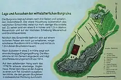 Die Spornburg bestand aus einer Oberburg auf einem Felsriff des Bergsattels und einer Unterburg am Westfuß des Riffes.