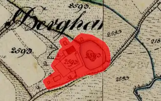 Lageplan des Burgstalls Bergham auf dem Urkataster von Bayern | ||