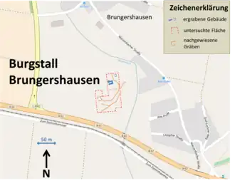 - ↑ a b c Norbert Buthmann, Norbert Goßler, Alex Posluschny, Helmut Valand, Benno Zickgraf: Moderne Prospektionsmethoden in der Burgenforschung – Archäologische Untersuchungen an der mittelalterlichen Burganlage von Lahntal-Brungershausen/Hessen. In: Burgen und Schlösser. 38, Heft 1998 II. Braubach/Rhein 1998, S. 80–87.