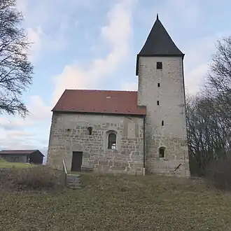 An der Stelle der Höhenburg steht die romanische Kapelle St. Nikolaus, die vermutlich die Burgkapelle war. Sie ist eine zweigeschossige Kirche mit ehemals profanem Obergeschoss. An der Südseite in ca. 4 m Höhe befindet sich eine romanische Eingangsöffnung in das teilweise abgetragene Obergeschoss. Die Mauern der Chorturmkirche sind bis zu 1 m dick und aus geschichteten Großquadern aus Granit errichtet, die auf ein ehemals höheres Bauwerk hindeuten. Der Turm ist im oberen Teil als Bruchsteinmauerwerk gemauert.
