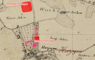 Lageplan von Burgstall und Schloss Herzogau auf dem Urkataster von Bayern | ||