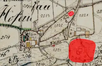 Lageplan von Burgstall Hofau auf dem Urkataster von Bayern | |