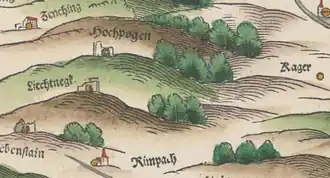 Burg Hochpogen auf den Bairischen Landtafeln von 1568 des Philipp Apian | ||