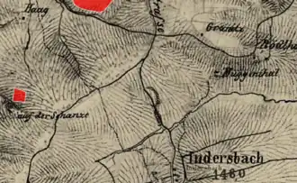 Lageplan des Burgstalls Indersbach (auf der Schanze) auf dem Urkataster von Bayern | ||