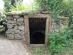 Der sechs mal zehn Meter große rechteckige Gewölbekeller ist nicht mehr überbaut und verläuft leicht schräg zur Straße.[8] Er liegt unter einem bewachsenen Hügel und befindet sich bis zur Hälfte der Raumhöhe im Boden. In der südwestlichen Raumecke führt ein 12-stufiger Treppenaufgang zu einem Portal ohne Türblatt, das mit Sandsteinquadern eingefasst ist und von einer Bruchsteinmauer eingerahmt wird. An der Nordseite (Straßenseite) des Kellers führen zwei kleine Lichtschächte im Gewölbe schräg nach oben ins Freie. Die quadratischen Öffnungen wurden in der Neuzeit durch Beton gesichert. Ein schräger Schacht an der Südseite sowie ein schräger Schacht an der Ostwand sind am Ausgang geschlossen. An der Westwand steigt ein kleinerer Schacht senkrecht nach oben und ist ebenfalls am Ausgang geschlossen. Unter dem westlichen Schacht über dem Boden etwas nach links versetzt befindet sich eine Nische. Eine weitere Nische liegt an der Westseite des Treppenaufgangs. Der Gewölbekeller ist aus geschichtlichen Gründen hessisches Kulturdenkmal.[9]