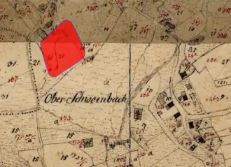Lageplan von Burgstall Oberschweinbach auf dem Urkataster von Bayern | ||