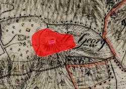 ![]() Kapelle und Burgstall von Südwesten über den Halsgraben | ||