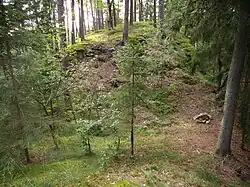In dem Geviert wurde lehmiger Sand vermischt mit Bruchsteinen gefunden. An Bodenfunden konnten im weiteren Verlauf der Sondierungen Nägel, viele Keramikstücke, eine Pfeilspitze, Reste von Gürtelschnallen, ein Messerfragment und Holzkohle gesichert werden. In dem nordostseitigen Steilhang zur Waldaist hin liegt eine Schutthalde mit abgestürzten Mauersteinen, hier wurden besonders viele Keramikteile gefunden. Die Keramiken werden auf das frühe 12., ein Teil auch in die zweite Hälfte des 13. Jahrhunderts datiert.