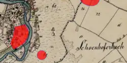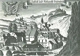 ![]() Schloss und Hofmark Schönhofen nach einem Stich von Michael Wening von 1721 | ||
