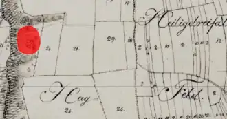 Lageplan des Burgstalls Schanzenberg (Aham) auf dem Urkataster von Bayern | |