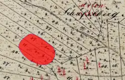 Lageplan des Burgstalls Scharfenberg auf dem Urkataster von Bayern