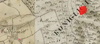 Lageplan des Burgstalls Schlossberg (Marklkofen) auf dem Urkataster von Bayern | ||