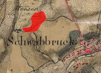 Lageplan von Burgstall Schwabbruck auf dem Urkataster von Bayern | ||