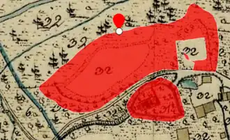 Lageplan des Burgstalls Unterframmering auf dem Urkataster von Bayern | |
