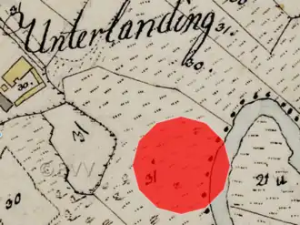 Lageplan des Burgstalls Unterlanding auf dem Urkataster von Bayern | |