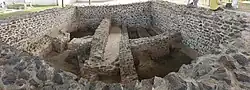 Befundplan von 1991Rekonstruktionsversuch des spätantiken Wachturms von BacharnsdorfKalkbrennofen (links) und Ziegelbrennofen (rechts) als mittelalterliche Einbauten in der Umfassungsmauer de Burgus