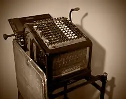 Ursprünglich verkaufte die American Arithmometer Company in St. Louis von William Seward Burroughs erfundene Addiermaschinen. Am 1. Februar 1898 wurden zehn dieser Additionsmaschinen u. a. bei der Postanweisungskontrolle in München aufgestellt: Jede Machine leistet in einer Stunde bei größerer Übung des Spielers[sic!] 2000 Stück Anweisungsaufträge nebst Addition und darüber hinaus. Der Apparat ist mäßig groß, etwa 35 cm hoch und 40 cm breit, er kommt auf einem feststehenden Tisch zur Aufstellung. Durch Glaswände sehen wir in den Mechanismus des komplizierten Werkes, dessen feinsinnige Zusammenstellung außer dem genialen Erfinder wohl nur wenigen zum vollen Verständnis kommen dürfte.[...]. [Die Maschinen] machen im Postanweisungsverrechnungsdienste viele Beamte (2 pro Maschine) überflüssig [...]. Das Gewicht der Maschine beträgt einen halben Zentner. Hergestellt wird sie in Lincoln bei Nottingham (England). [...].[1] Nach ihrem Umzug nach Detroit im Jahre 1904 wurde ihr Name nach dem Erfinder in Burroughs Adding Machine Company geändert. Burroughs starb 1898. Burroughs wurde zum größten Hersteller von Addiermaschinen in den USA, in den 1950er Jahren wurden dann auch Schreib- und Rechenmaschinen gefertigt.
