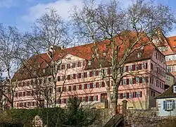 Der viergeschossige Bau mit Halbwalmdach entstand in seiner heutigen Form zwischen 1803 und 1805 und beherbergte nach den Umbaumaßnahmen das erste Klinikum Tübingens. Dort wurde von September 1806 bis Mai 1807 Friedrich Hölderlin von Johann Heinrich Ferdinand Autenrieth behandelt. Als Charakteristikum des Gebäudes sind die beiden Treppenaufgänge vom davor gelagerten und mit alten Platanen bewachsenen Platz anzusehen.