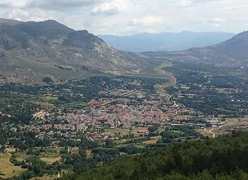Bustarviejo liegt etwa 60 Kilometer nördlich von Madrid in einer Höhe von ca. 1220 m.[4] An der Grenze zur Nachbargemeinde Canencia findet sich eine Gipfelkette mit den Spitzen des Cabeza de la Braña (1772 m) und Mondalindo bzw. Cabeza del Cervanal (1831 m).