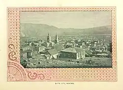 Butte wurde 1864 als Bergbausiedlung des Anakonda-Kupferbergwerks gegründet und nach dem Big Butte⊙[4] benannt, einem prominenten Berg über der Stadt (zur Bedeutung siehe wikt:en:butte).[5] Die Stadt erlebte zeitweise eine rasende Entwicklung. 1880 wurden 3.363 Einwohner gezählt, 1910 dann 39.165.[6] Zunächst wurden nur Gold und Silber in dem Gebiet gefördert, mit der Entwicklung der Elektrizität ergab sich jedoch ein weitaus größerer Bedarf für Kupfer. Das zunächst im Tiefbau betriebene Bergwerk Anakonda war von 1892 bis 1903 das weltweit ergiebigste Kupferbergwerk. Bereits 1911 als größte Stadt Montanas angegeben,[6] wuchs die Einwohnerzahl des Ortes nach dem Ersten Weltkrieg inoffiziell bis auf 60.000 im Jahr 1920. Der Ort wurde aufgrund der reichhaltigen Gold- und Silbervorkommen in der Umgebung als reichster Hügel der Welt bezeichnet. Ungefähr zwischen 1900 und 1917 gab es eine starke sozialistische Bewegung in der Stadt, 1914 wurde sogar ein sozialistischer Bürgermeister gewählt.