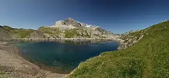 | Panoramabild des Butzensees mit Butzenspitze im Hintergrund | ||