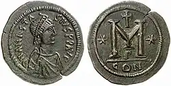- ↑ Andreas Urs Sommer, Die Münzen des Byzantinischen Reiches 491–1453. Mit einem Anhang: Die Münzen des Reiches von Trapezunt. Regenstauf: Battenberg Verlag, 2010, Münzbeschreibung 84.1.