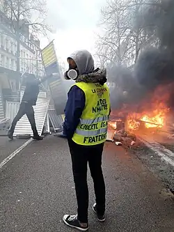 Seit 2014 enthält die französische Steuer auf Kraftstoffe und Heiz-Brennstoffe, die Taxe intérieure de consommation sur les produits énergétiques (TICPE), einen zum Kohlenstoffgehalt proportionalen Anteil, den „Klima-Energiebeitrag“ (contribution climat énergie (CCE)), 2014 betrug er sieben Euro pro Tonne CO2. Dort wurde der fixe, vom Kohlenstoffgehalt unabhängige Teil der Steuer in gleicher Höhe abgesenkt, sodass die Steuerhöhe 2014 insgesamt unverändert blieb. In den Folgejahren sollte der CCE ohne weiteren Ausgleich auf 14,50 Euro (2015) und 22 Euro (2016) pro Tonne CO2 steigen. Mit den Einnahmen will die französische Regierung den Ausbau erneuerbarer Energien vorantreiben.[48][49] Seit 2018 wird eine Tonne CO2 mit 44,60 Euro besteuert. Laut einer Übersicht der Weltbank stellt die französische CO2-Steuer, gemessen an den Einnahmen, die umfangreichste der Welt dar. Die französischen Stromkunden sind von der Abgabe relativ gering belastet, weil die Stromindustrie des Landes über einen hohen Atomstromanteil verfügt und nur relativ wenig Kohle einsetzt. Zu einer hohen Belastung führte die Steuer jedoch für Vielfahrer, wogegen sich 2018 die Gelbwestenbewegung mit teils gewaltsamen Protesten wandte. Eines der Zugeständnisse von Staatspräsident Emmanuel Macron an die Protestierenden war die Absage weiterer Erhöhungen. Ursprünglich hätte die Steuer bis zum Jahr 2022 den Betrag von 86,20 Euro pro Tonne erreichen sollen.[50]