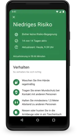 • Eine Rückverfolgung von Personen ist nicht möglich; auch Risikokontakte sind nur für die Nutzer selbst sichtbar.