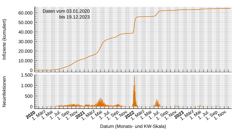 Am 26. März 2020 waren drei Infizierte bekannt, die sich zuvor in Südafrika aufgehalten hatten. Das Gesundheitsministerium empfahl die Einhaltung von Hygieneregeln und riet den Infizierten vom Besuch von Veranstaltungen und öffentlichen Räumen ab.[38]
